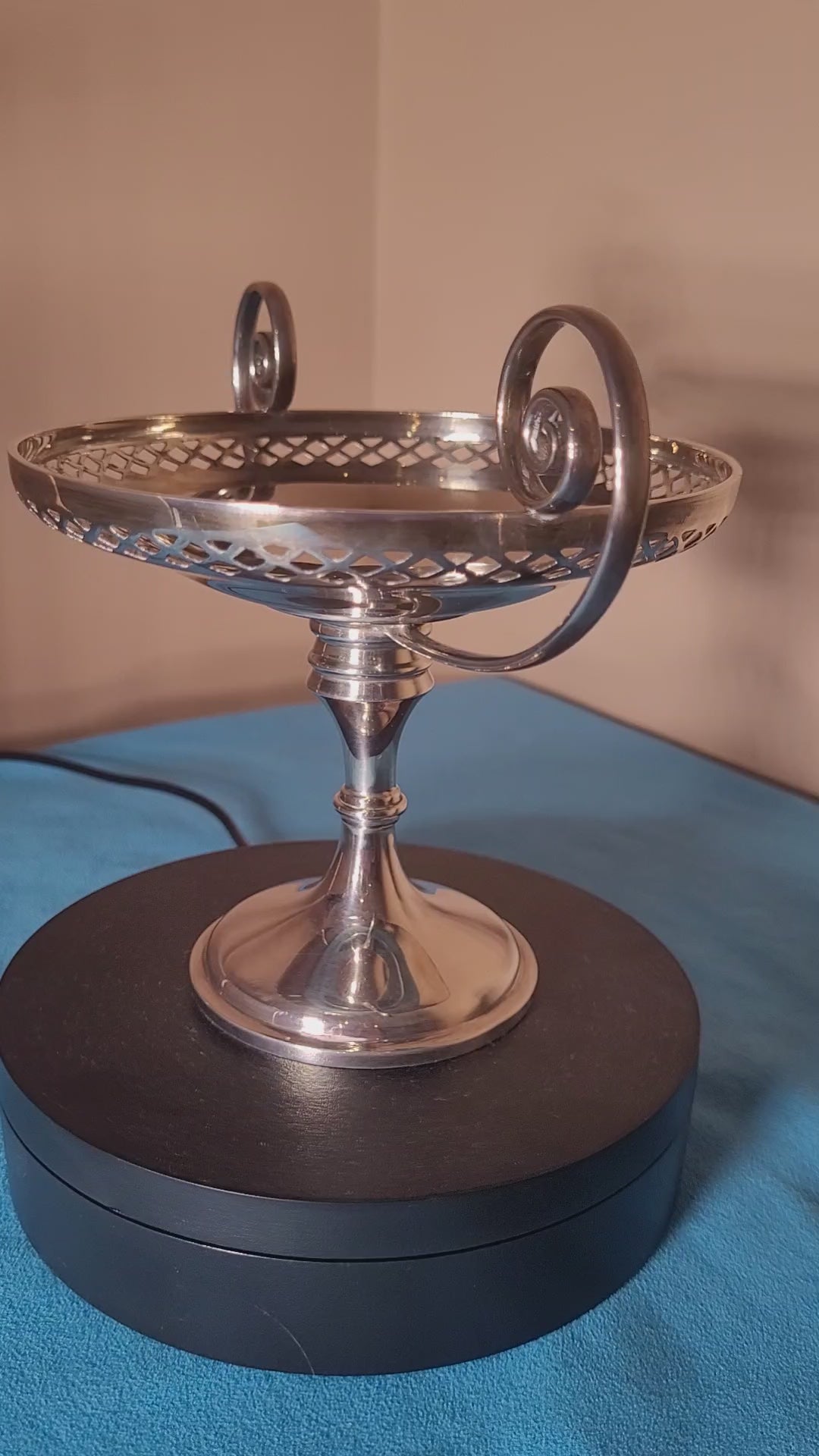 For sale: This antique solid silver tazza dish on stand is a beautifully crafted Edwardian piece. It is fully hallmarked for London 1909, confirming its authenticity and period. The maker is John Collard Vickery, a highly regarded silversmith known for producing luxury-quality silverware. The dish features elegant pierced openwork around the rim, giving it a decorative and refined appearance. On each side are graceful scrolling handles that add a classical and balanced form. The piece stands on a raised pedestal base that displays it attractively. The silver surface carries a gentle antique patina consistent with age and careful use. With a weight of approximately 206 grams, it feels solid and well-made when handled. The craftsmanship throughout is excellent, with crisp detailing and a beautifully finished surface. This tazza is ideal as a display piece, for serving small items, or for enhancing any antique silver collection. The hallmarks are clear and fully readable, showing the maker’s mark, lion passant, leopard’s head, and date letter. It would make a superb gift for collectors of Edwardian or London silverware. The dish is free from structural damage and stands evenly and securely. Light surface marks from age are present but do not detract from its charm. Kindly look at all photos to assess the condition and overall quality for yourself. "Please take a look at the other silver items in my shop—I’m happy to combine postage." |
